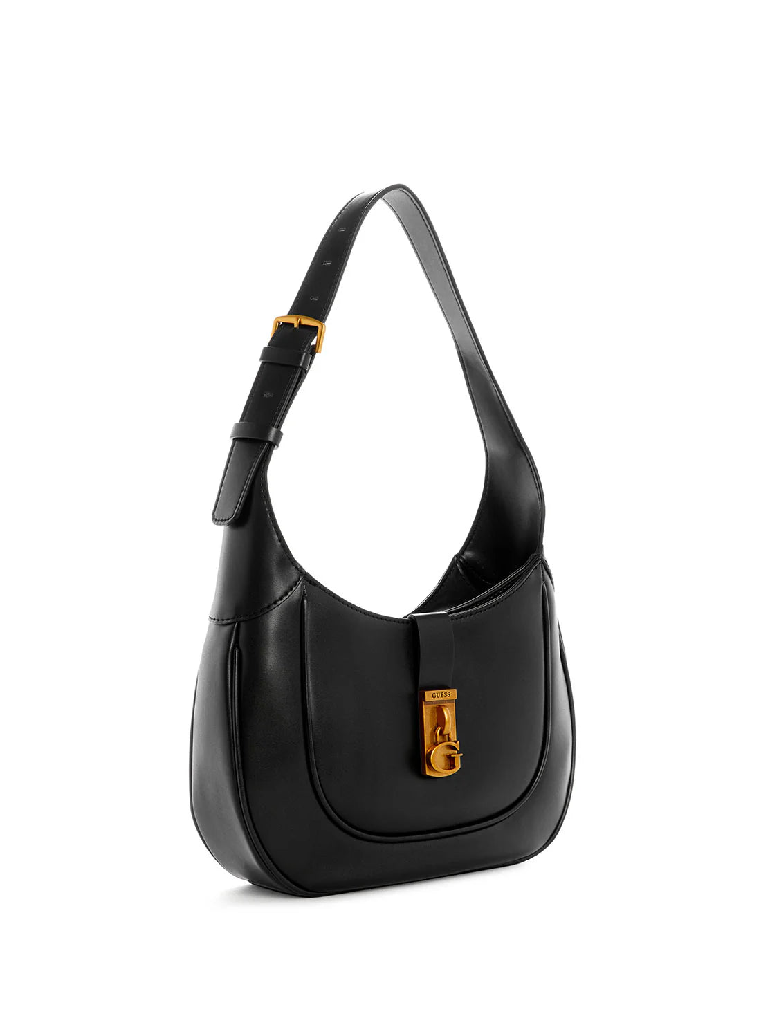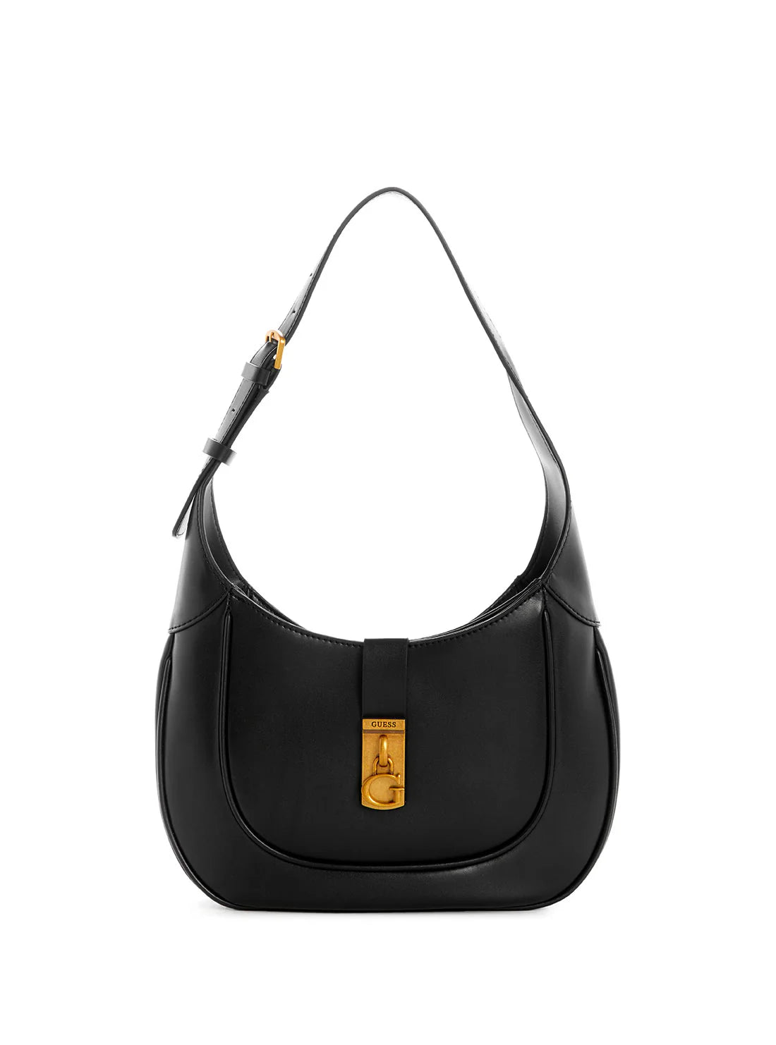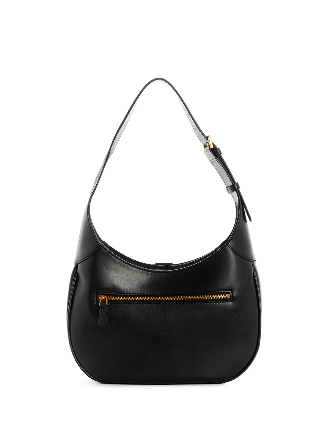 Our Black Maimie Hobo Shoulder Bag is a must-have this season. This timeless handbag is designed with a pebble PU base, curved silhouette, top handle, antique bronze hardware, zip pockets and logo detailing. The perfect stylish touch to your outfit.