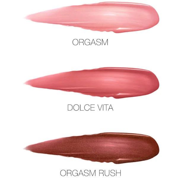 You’re invited. Get glowing. Luxuriate in the spotlight with an exclusive set of Mini Afterglow Liquid Blush in three coveted shades: iconic, peachy-pink Orgasm; dusty rose Dolce Vita; and new rosy bronze Orgasm Rush. Seamlessly silky formula delivers a radiant rush of colour, and builds and blends without streaking, for skin that looks lit-from-within. Features high-shine, holiday-edition metallic NARS packaging.