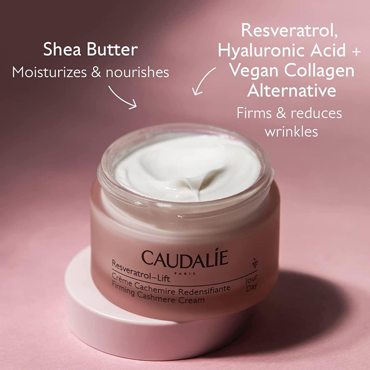 This anti-aging daily moisturizer deeply hydrates, visibly firms, lifts and reduces the look of wrinkles with Caudalie’s exclusive patented blend of Resveratrol, Hyaluronic Acid, and Vegan Collagen. Its silky, luxuriously soft texture glides onto skin and is enriched with mineral pearlizers for an immediate glow.