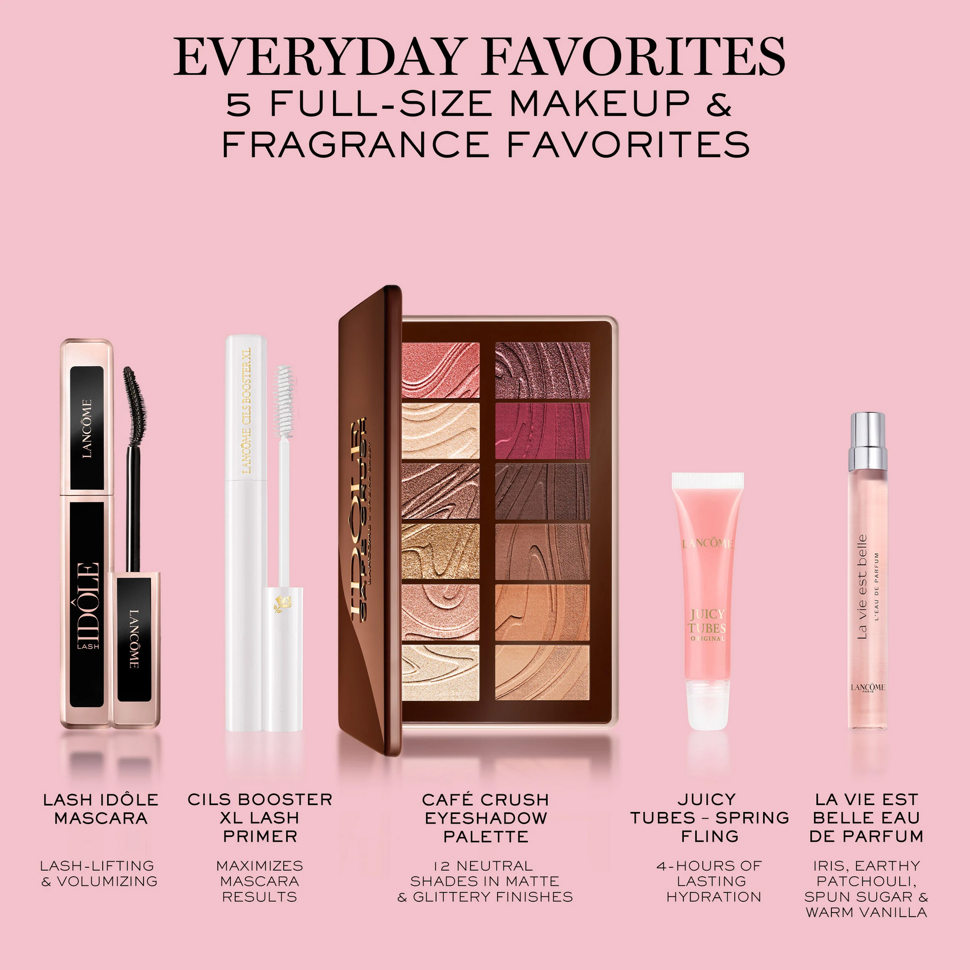 Lancome Holiday 2025 Beauty Box features 10 products with 8 full-size favorites, a deluxe sample, and a vanity to take you en route to your happy holidays!
