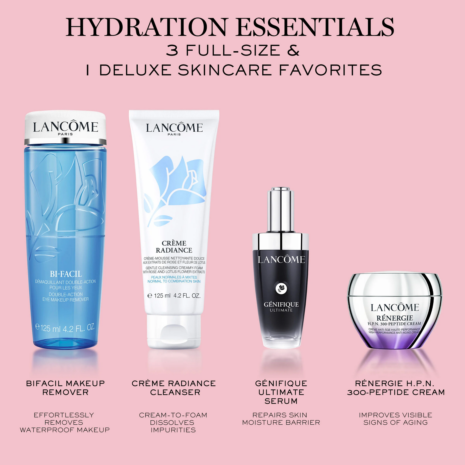 • Cleanser: This gentle cream-to-foam cleanser with antioxidant White Lotus and soothing Rose de France penetrates deep into the pores without over-drying to gently remove makeup, even waterproof, dissolve impurities and purify the skin.