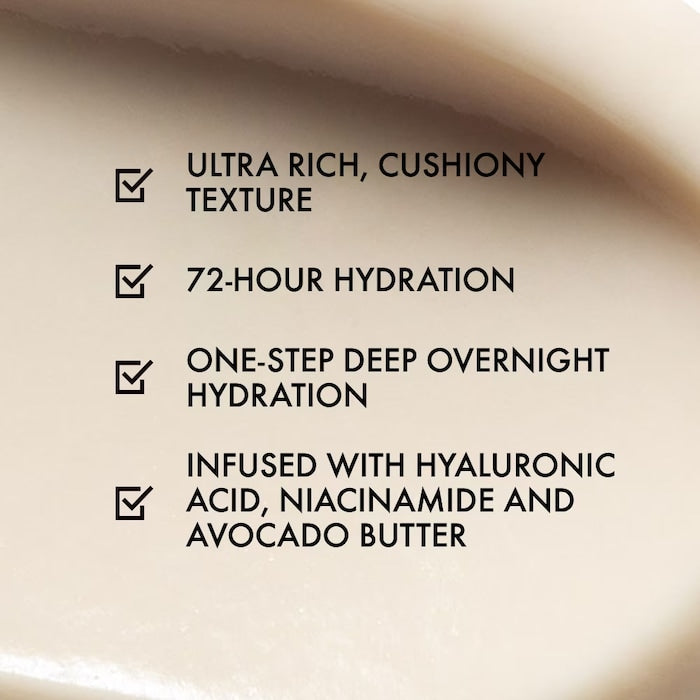 An ultra-moisturizing sleeping face mask infused with Glacier Water, Hyaluronic Acid and Avocado Butter, instantly delivers 72-hour hydration, and keeps skin—even hands—soft and smooth.