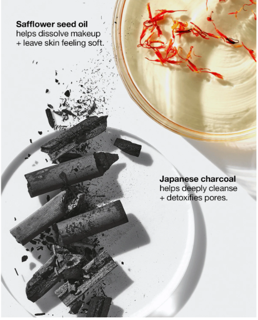 - Lightweight charcoal cleanser quickly dissolves long-wearing face makeup, tenacious waterproof eye makeup, sunscreens, and pollutants.