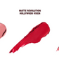- RED (Hollywood Vixen): My Matte Revolution formula in a perfectly nuanced red with 3D-effect pigments to enhance the look of every skin tone!