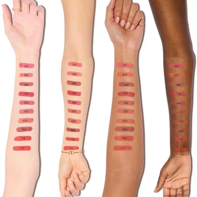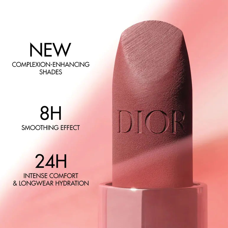 Infused with floral lip care, Rouge Dior lipstick hydrates lips and dresses them in longwearing couture color while delivering 24 hours* of comfort. The selection includes 3 lipsticks in a miniature size and in the following shades: