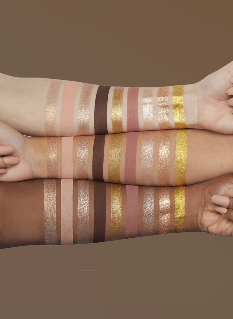 A pigment-packed palette of NINE glamorous shadows in THREE eye-catching finishes; rich buttery mattes, high shine metallics and sparkly shimmers. Plus, an ALL-NEW texture of pink and gold that’s literally been sprinkled with gold flakes for a lustrous, shimmering finish.