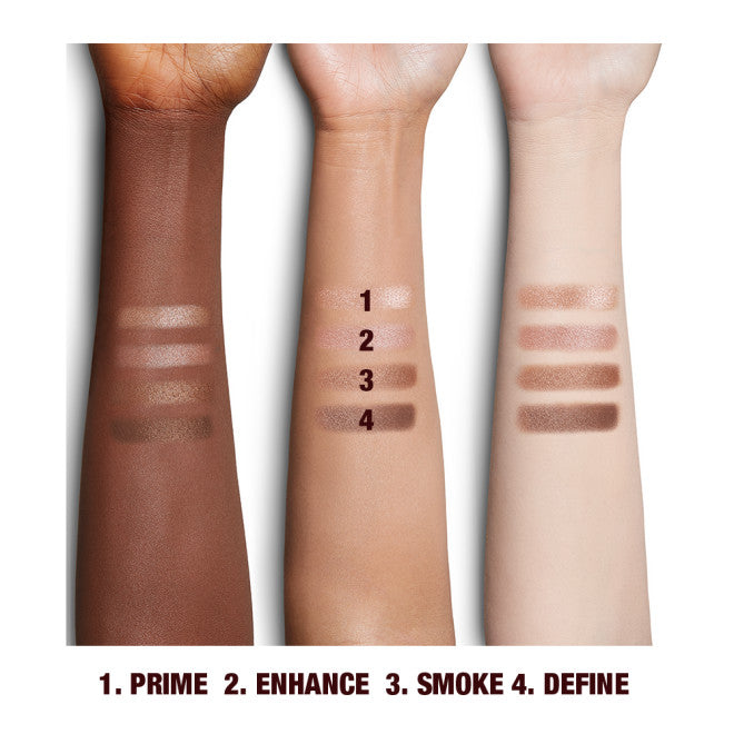 I have created the most flattering, finely milled eyeshadows with soft shimmering, light-as-air metallic and modern matte textures to build intensity! It’s the magic of HOLLYWOOD LIGHTS and smoothing effect, flattering SOCIAL MEDIA FILTERS, BOTTLED!