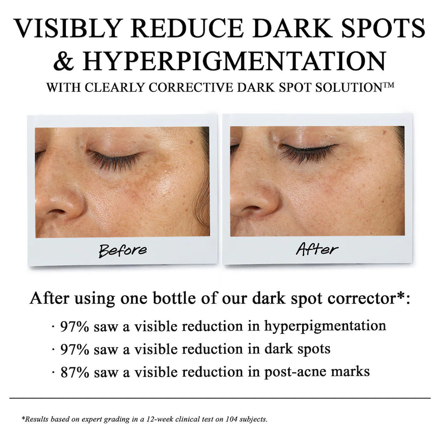 Clinical Results: In an expert grading in a 12-week clinical test on 104 subjects, after using one bottle of our dark spot corrector*: