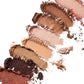 - Shadows: Grace (pale pink), Speak Up (peachy nude), Good Vibes (rose copper), Encourage (champagne), Role Model (antique gold), Shake It Off (deep bronze), Respect (deep plum)