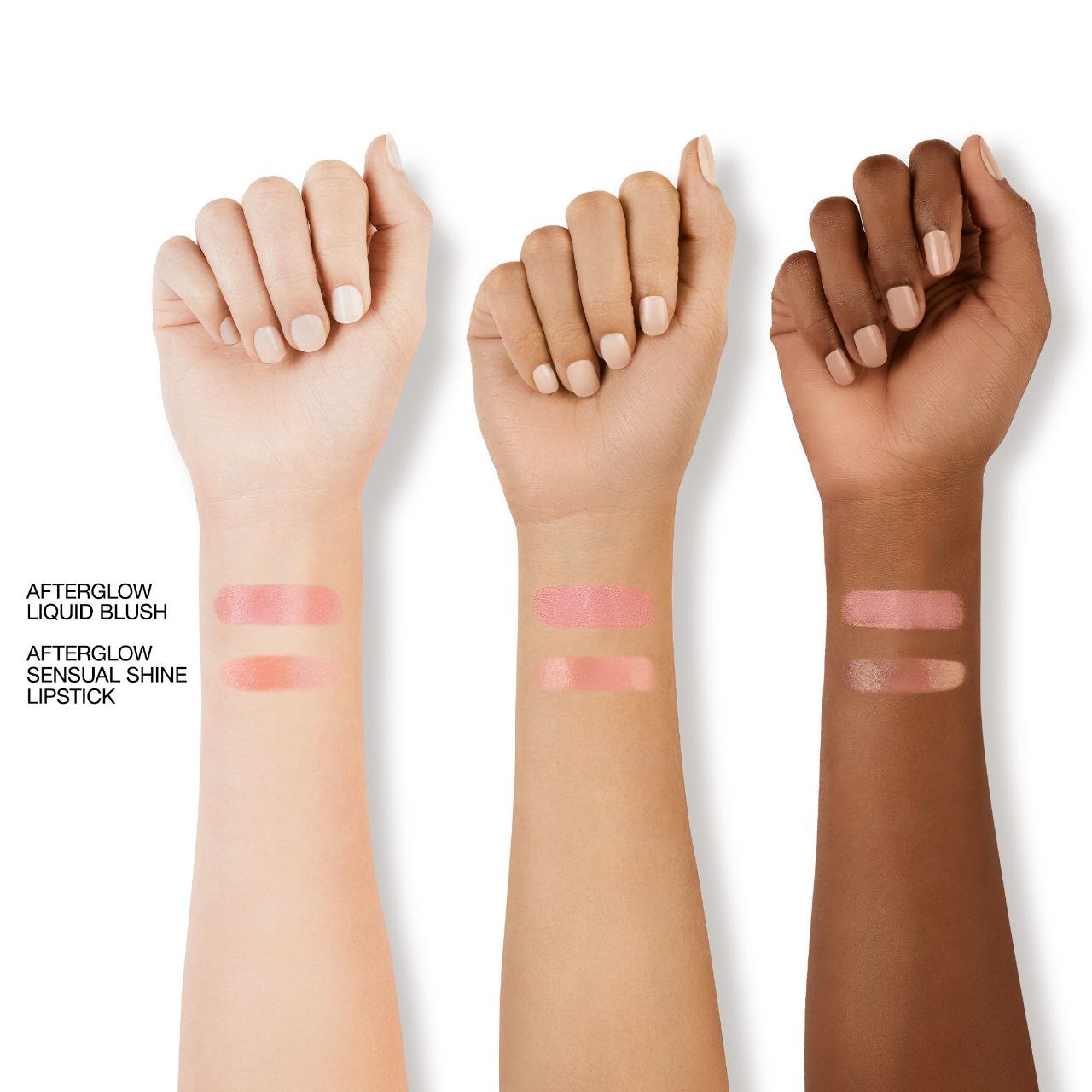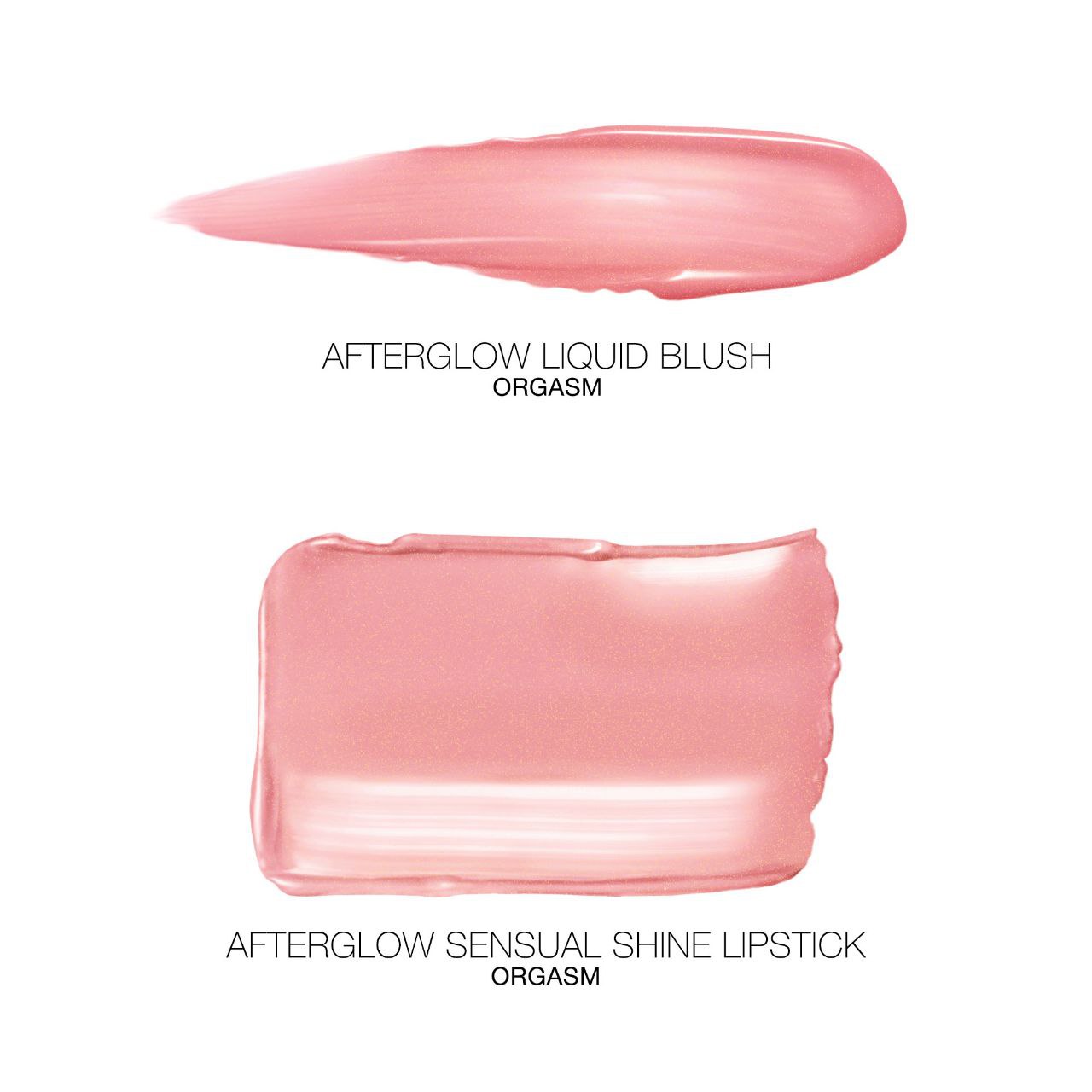 Experience all-over ecstasy with a rush of award-winning shade Orgasm in Afterglow sensations. Treat cheeks to Mini Afterglow Liquid Blush, an indulgent formula loaded with 8-hour hydration. Swipe on seduction with a full-size Afterglow Sensual Shine Lipstick, a color-meets-care hybrid with nourishing benefits and a dimensional shine for fuller-looking lips. Twice the thrill. All the pleasure.