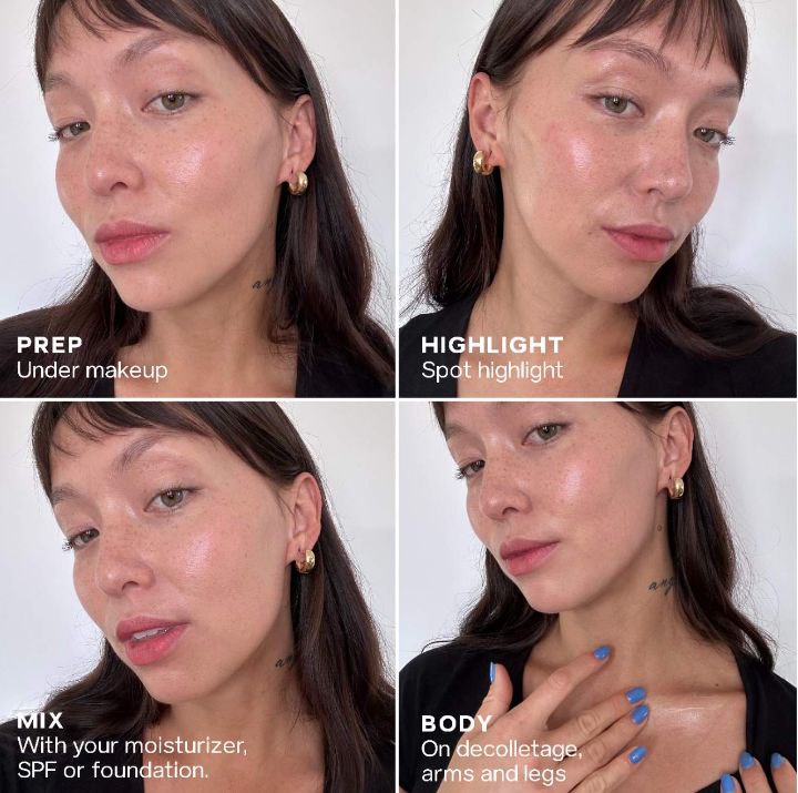 Use 1-2 pumps and apply after skincare for a radiant prep step.