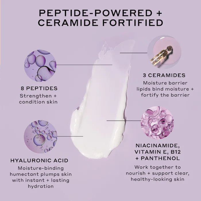 - What it is: ပျက်စီးနေတဲ့ အရေပြားအကာအကွယ် (Skin Barrier) ကို တာဝန်ယူ ပြန်လည်ပြုပြင်ပေးတဲ့ OLEHENRIKSEN ရဲ့ နာမည်ကြီး Barrier-repair Moisturizer လေးဖြစ်ပါတယ်။ သူ့မှာ အသားအရေကို ကြံ့ခိုင်စေတဲ့ Peptides, Ceramides နဲ့ Collagen တွေအပြင် Hyaluronic Acid နဲ့ Niacinamide တို့ အချိုးကျ ပါဝင်ပါတယ်။