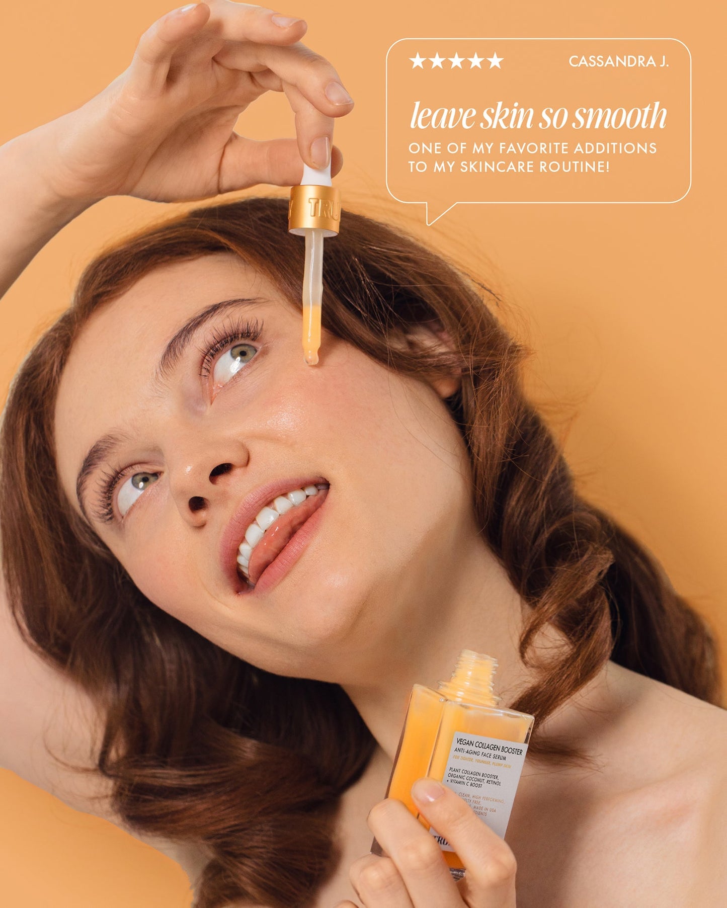 Recharge your skin with our Vegan Collagen Booster Serum. Formulated with retinol, vitamin C, and our NEW plant collagen booster, this anti-aging serum supports natural collagen production while protecting skin against environmental aggressors for a smooth, supple, and radiant complexion.